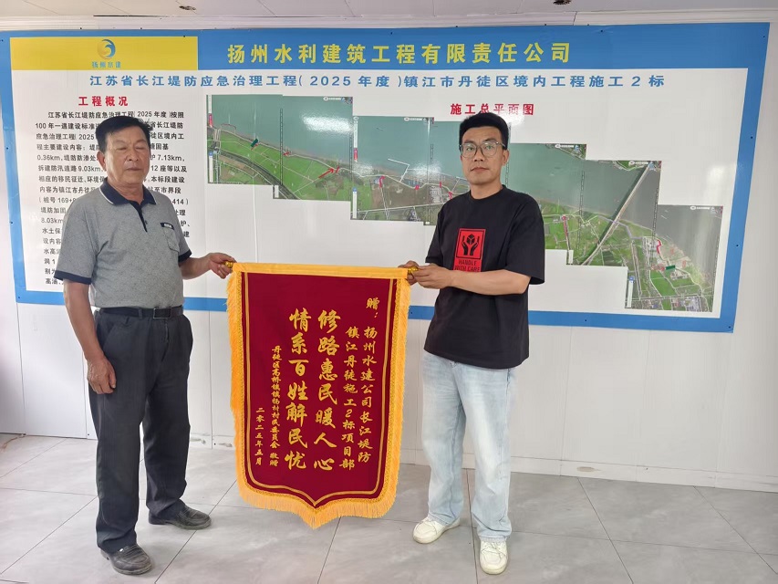 5月20日,一面镌刻着"修路惠民暖人心,情系百姓解民忧"的鲜红锦旗,由镇江市丹徒区高桥镇镇扬村村委会郑重赠予满冠足球江苏省长江堤防应急治理工程(2025年度)丹徒区一期施工2标项目部,这面锦旗不仅承载着村民的深情厚谊,更是对国企民生担当的生动诠释。