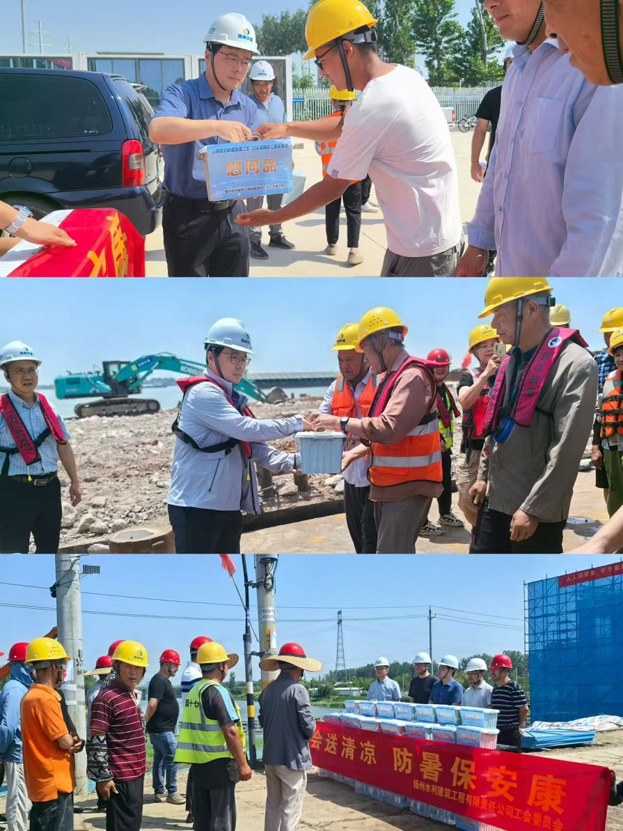 慰问组先后走访了扬州经济技术开发区古运河西北片区排涝治理二期工程施工标、淮河入江水道右堤廖家沟(文昌大桥至羊尾巴段)应急加固工程施工二标、长江扬中抛石(扬州段)3标等7个项目部,为奋战在高温下的员工送上夏季用品、矿泉水、防暑药包等清凉物资,并详细了解项目进展和员工工作生活情况,叮嘱项目部管理人员要始终把安全生产放在首位,严格落实各项防暑降温措施,科学合理安排作业时间,确保高温季节施工安全有序推进。要坚持以人为本的管理理念,切实保障一线员工的身心健康,做到安全生产与人文关怀并重。