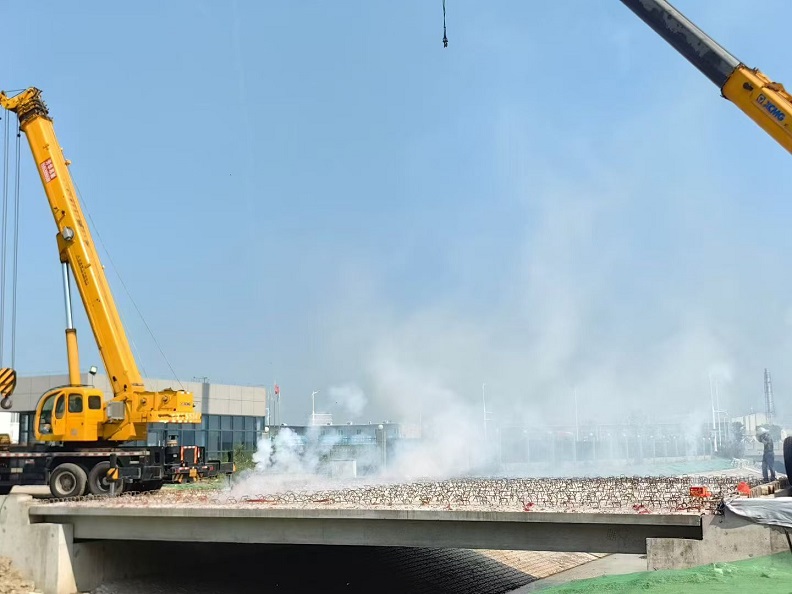 开发区西南片防洪除涝能力提升一期项目施工Ⅰ标首座桥梁梁板架设完成