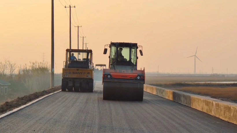 离月底通车又进了一步! 通州湾滨海新区生态化海堤工程二标段完成海堤道路沥青下面层摊铺