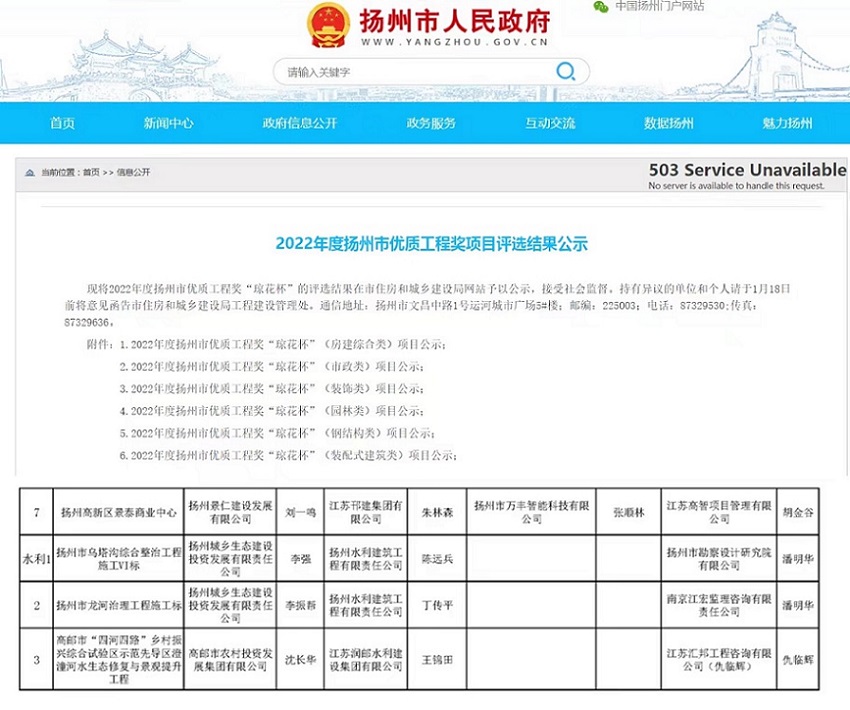 日前,2022年度扬州市优质工程奖项揭晓,满冠足球承建的市重点民生项目“扬州市龙河治理工程施工标”和“扬州市乌塔沟综合整治工程施工VI标”,均被扬州市住房和城乡建设局表彰为扬州市“琼花杯”优质工程奖。