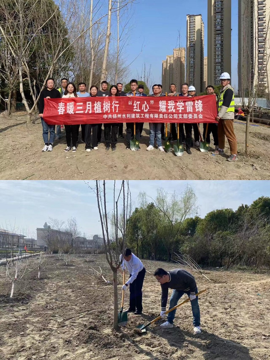 【概要描述】为贯彻落实党的二十大精神,进一步推进生态文明建设,弘扬雷锋精神,结合“学雷锋志愿服务集中行动月”活动安排,3月10日下午,满冠足球党支部联合农投集团团支部在满冠(中国)开发区EPC项目部二桥河整治施工现场组织开展“春暖三月植树行‘红心’耀我学雷锋”主题植树活动。支部全体党员、入党积极分子和团员参加活动。 植树现场,大家热情高涨、干劲十足,分组劳动、挥锹铲土、扶苗提树、取水浇灌,道道工
