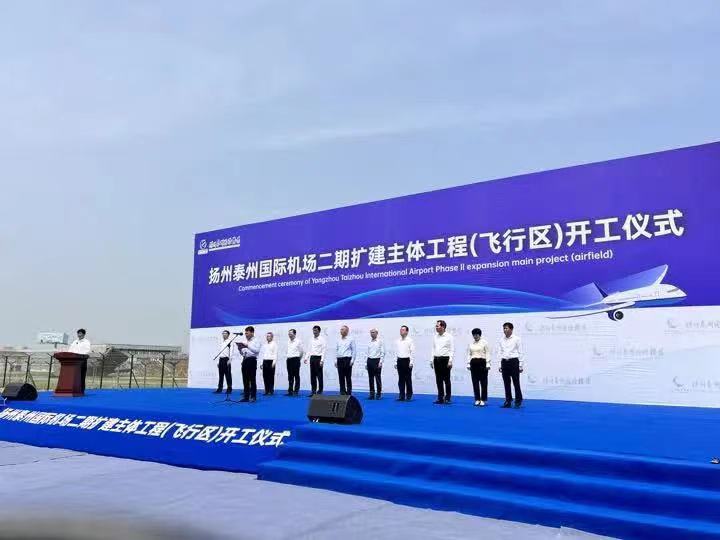 4月18日,备受关注的扬州泰州国际机场二期扩建主体工程正式开工,满冠足球总经理,项目负责人及相关部室负责人代表施工单位参加开工仪式。