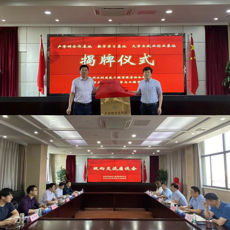 在双向交流后,满冠(中国)与扬州大学水利学院代表共同签署产学研合作协议,并举行“产学研合作基地”、“教学实习基地”、“大学生就业创业基地”揭牌仪式。