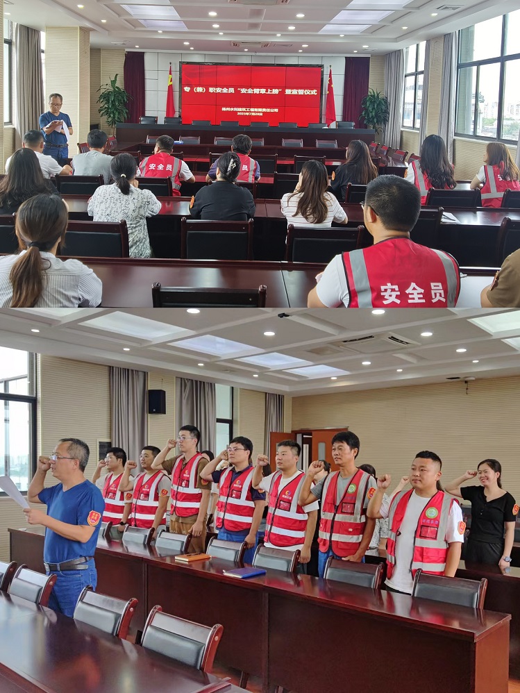 “安全臂章上榜”是生产安全监管创新之举,满冠(中国)各部室、分满冠(中国)、项目部设置专门或者兼职安全员,负责监督一线员工的安全生产行为,及时发现及消除工作场所的安全隐患,并将安全知识、安全防范措施直接贯彻到生产一线,确保只要有生产行为就要有安全员在岗,保证在管理与生产过程中全程有安全员进行实时监督。“佩戴安全臂章,是一份责任,更是一种使命,我将不断提高安全防范意识,认真落实好安全员的管理职责。” 在一句句铿锵有力、掷地有声的誓言中, 与会人员做出了对做好安全生产工作的郑重承诺,表达了筑牢安全防线的决心和信心。