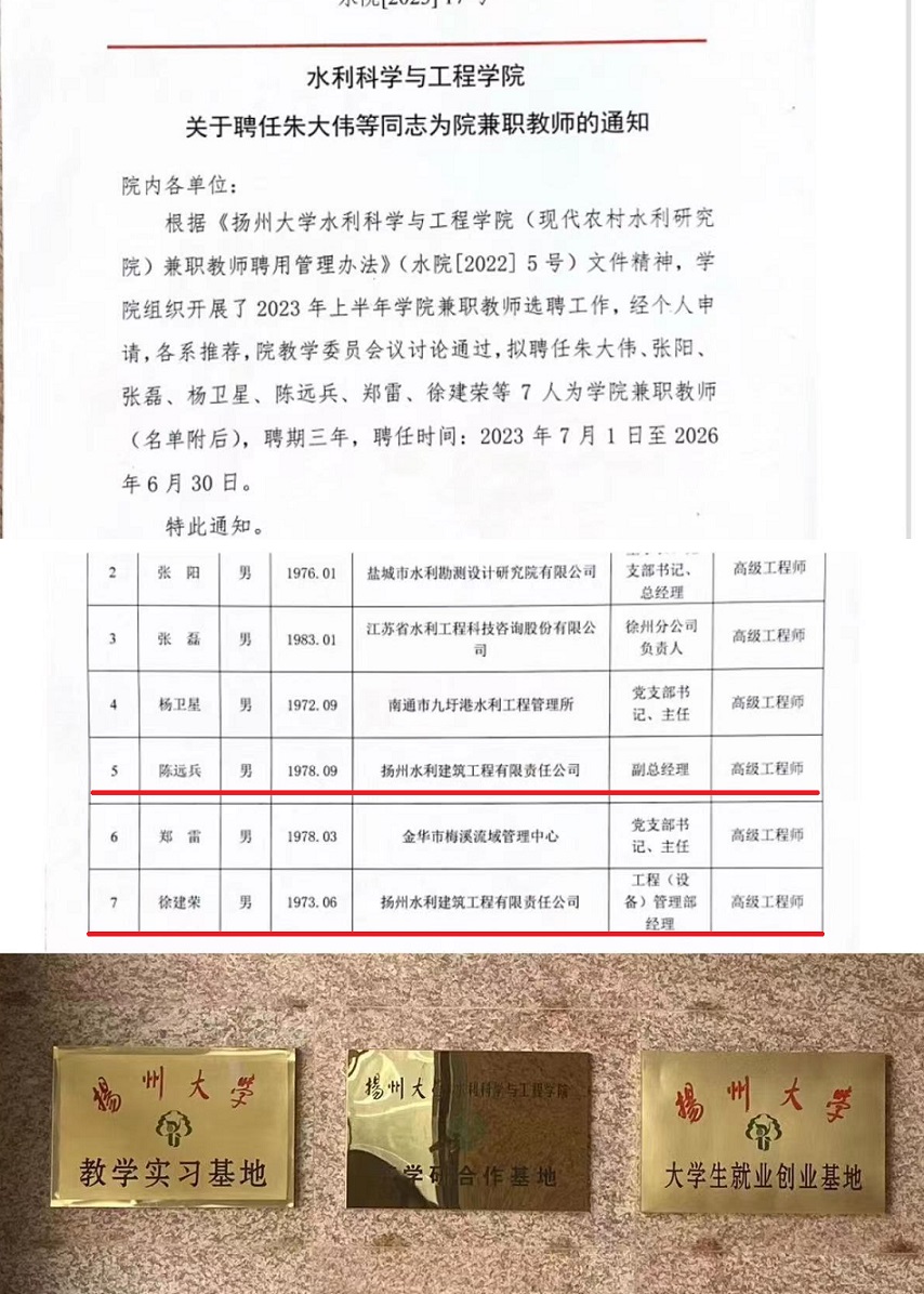 校企合作再深入 协同育人结硕果 ——满冠(中国)两名同志受聘为扬大水利学院兼职教师