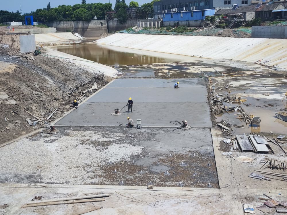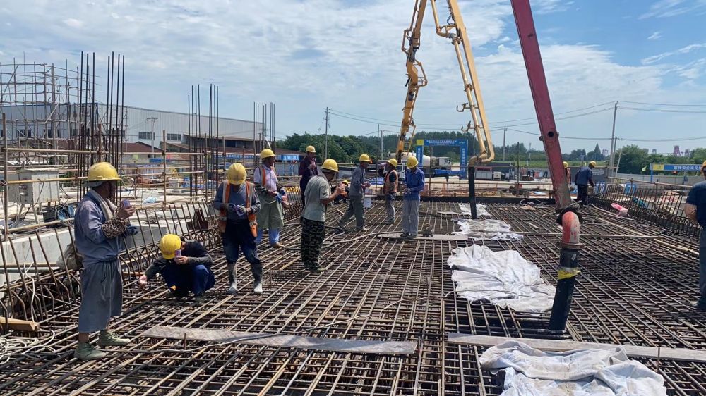 清晨四点的十二圩闸站工程施工Ⅰ标项目施工现场,施工人员已“全副武装”投入到内河侧护底护坡混凝土的浇筑工作中。一边是搬材料、搭模板、绑钢筋,另一边是木工正在安装清污机桥栏杆底座的模板,测量人员为了即将开始的灌注桩施工,抓紧进行打桩平台以及桩位的复核。每个工序都在有条不紊加速推进,确保工程能在八月底顺利完成工程水下验收。项目合理调配时间,采取“做两头、歇中间”的作息方式错峰作业,尽可能缩短施工人员高温户外作业时间。