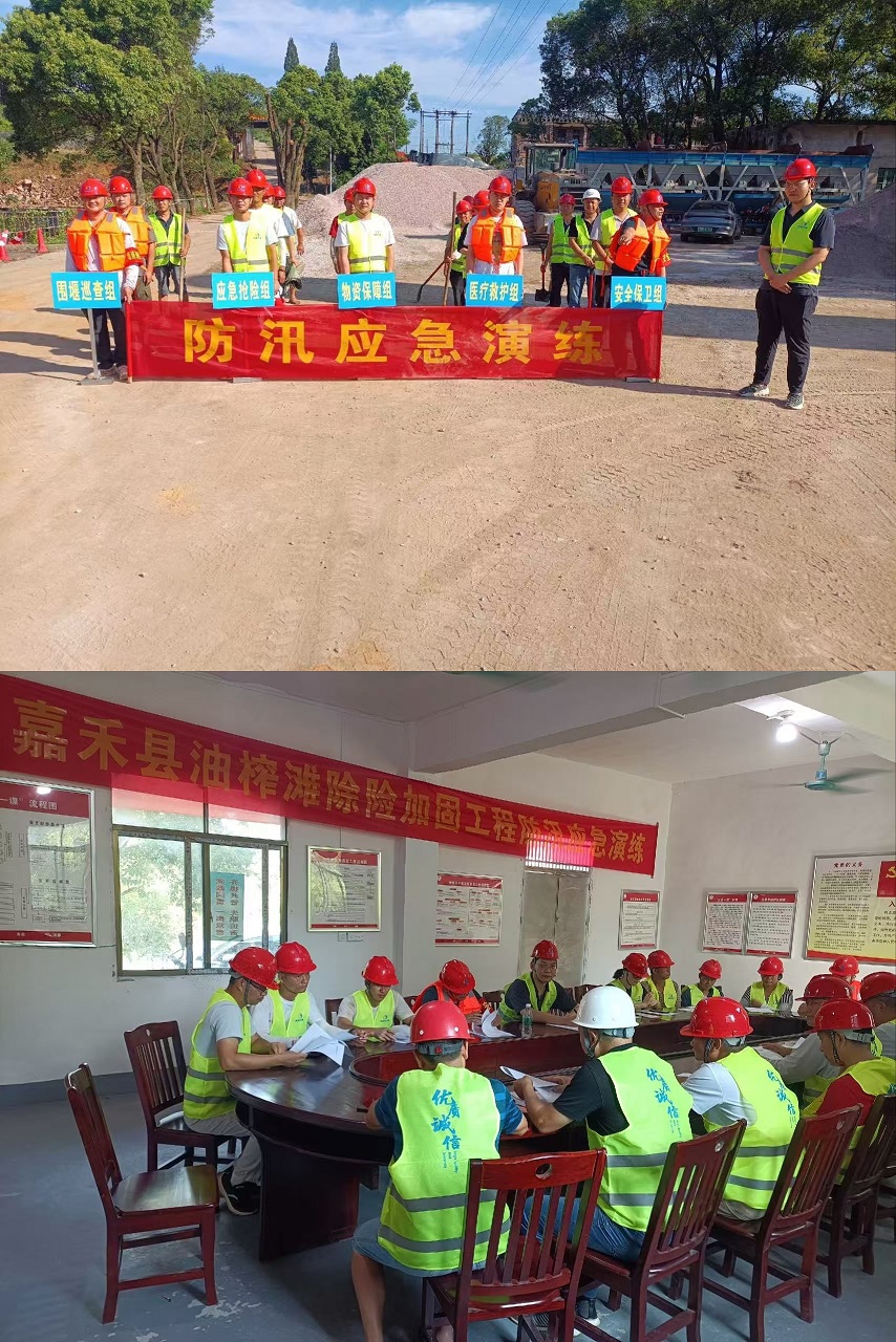 【概要描述】根据郴州市安全生产委员会《关于近期重点行业领域安全生产风险的提示函的通知》的要求,8月22日,扬州水利建筑工程有限满冠(中国)油榨滩除险加固工程项目部组织开展了防汛应急演练,工程各参建单位代表近40人参加了活动。 该项目位于湖南省嘉禾县境内,地形地貌特殊,叠加极端强降雨天气,地质灾害多发、易发、频发。特别是施工范围内河道水位受降雨及上游水库的影响较大,当前的防汛形势依然严峻。针对工程特点及防汛要求,项目